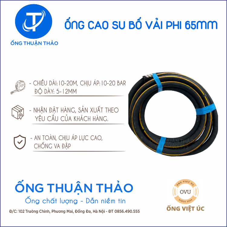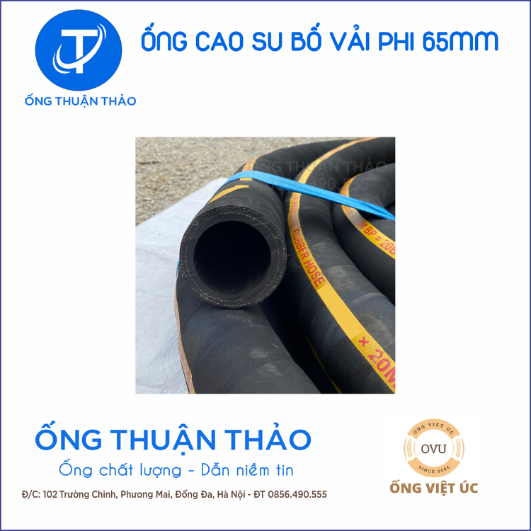 Ống cao su bố vải phi 65mm từ Ống Thuận Thảo được sản xuất từ nguyên liệu chất lượng và đạt tiêu chuẩn cao. Công ty có nhiều năm kinh nghiệm trong lĩnh vực cung cấp các loại ống mềm công nghiệp, đã được nhiều khách hàng tin tưởng và hài lòng.