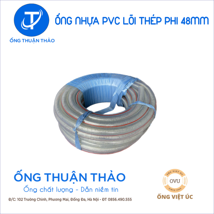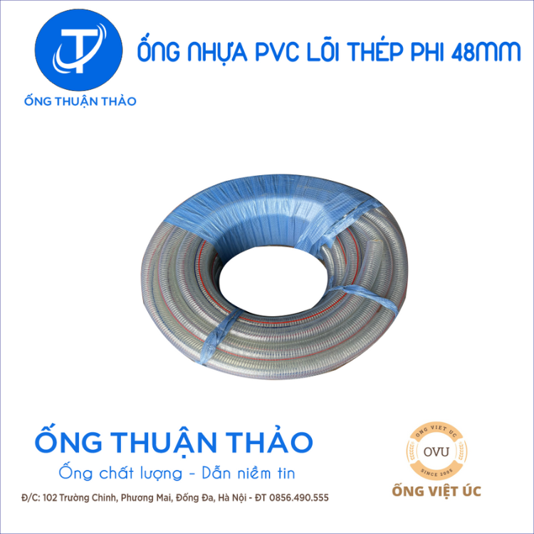 Ống Nhựa PVC Lõi Thép Phi 48mm - Nhựa dẻo lõi lò xo Việt Úc